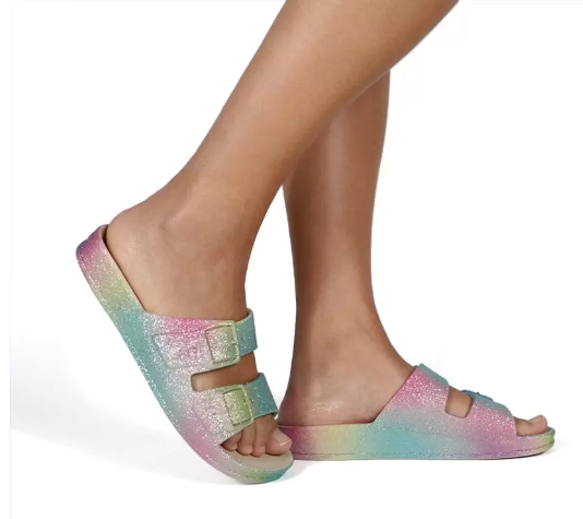 These sandals are ultra-glittery ✨ – it’s normal for them to shed a little glitter during the first few wears. Don’t worry, they’ll keep shining like unicorn magic all summer long! 🌈