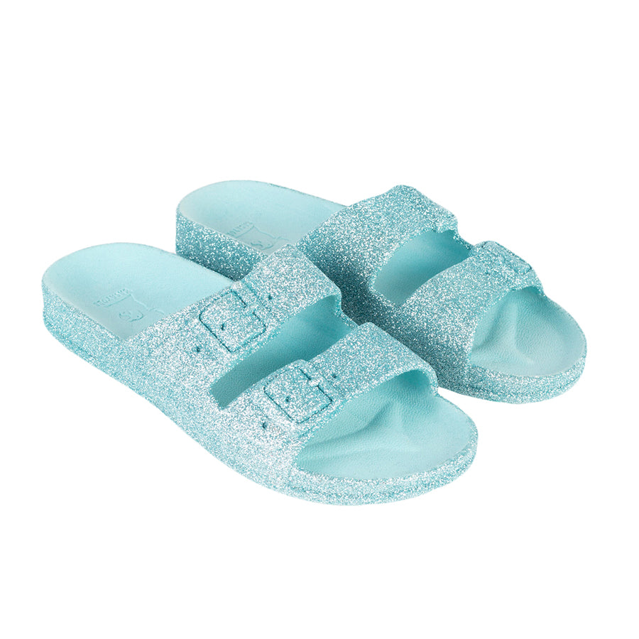 Just like our entire collection of two-strap sandals, they are candy-scented. If you love a touch of magic, explore our full collection of glitter sandals. This way! ✨💙