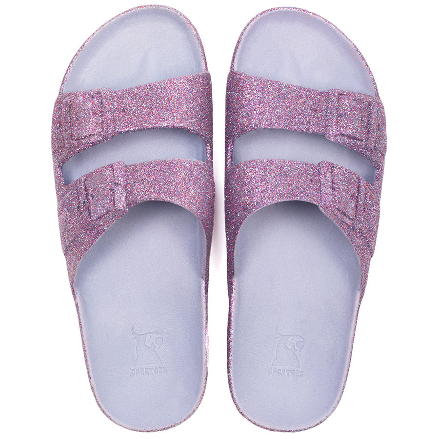 Just like our entire collection of two-strap sandals, they are candy-scented. If you love a touch of magic, explore our full collection of glitter sandals. This way! ✨💙