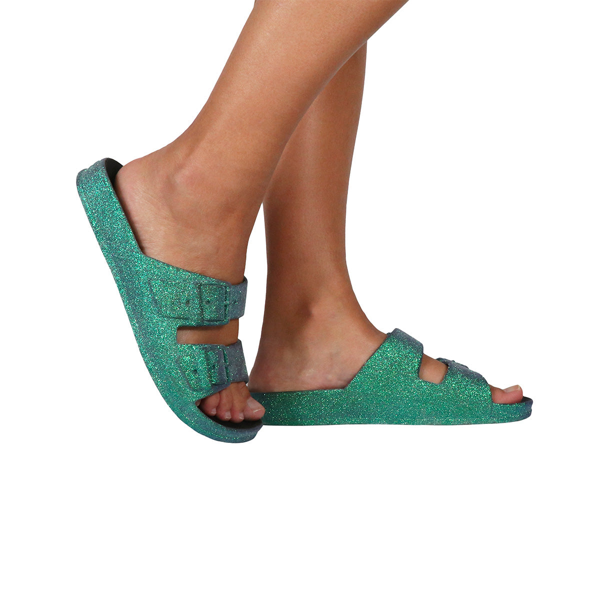 Just like our entire collection of two-strap sandals, they are candy-scented. If you love a touch of magic, explore our full collection of glitter sandals. This way! ✨💙