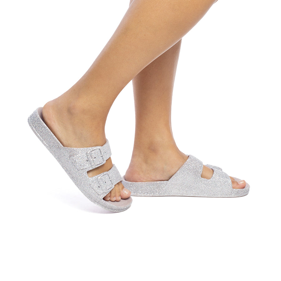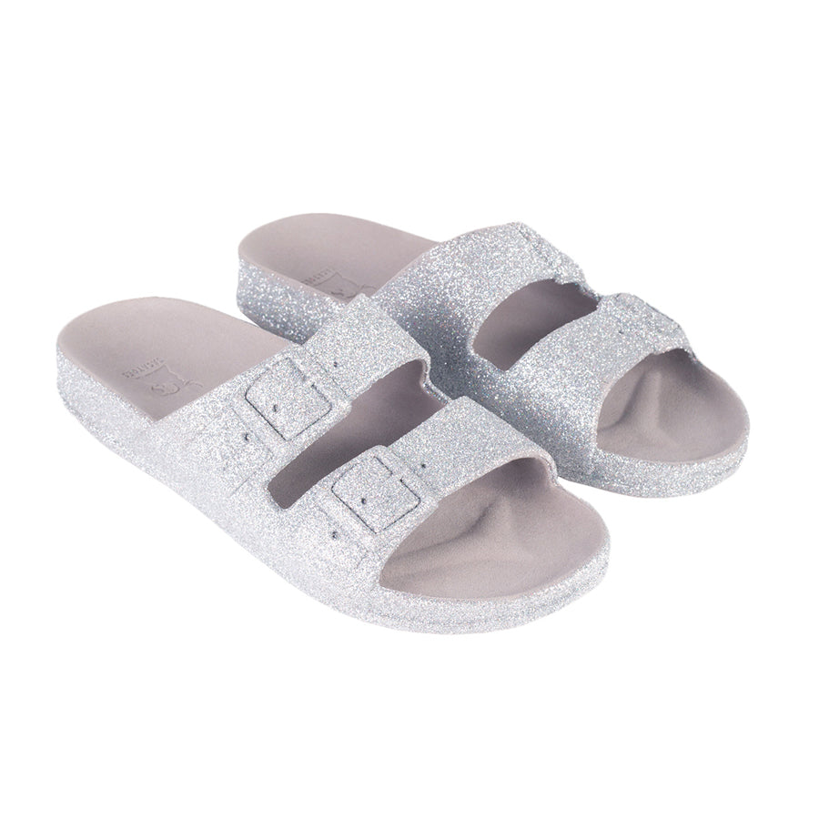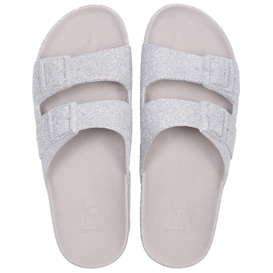 CACATOES - The golden hour is at your feet in SILVER A delicate mix of azure and shimmering reflections to make your feet glow with elegance. When the sunlight kisses your sandals, they shine like the ocean at dawn—serene, captivating, and impossible to ignore. No doubt, this dreamy blue will steal your heart. Aren’t they already in your shopping cart?
